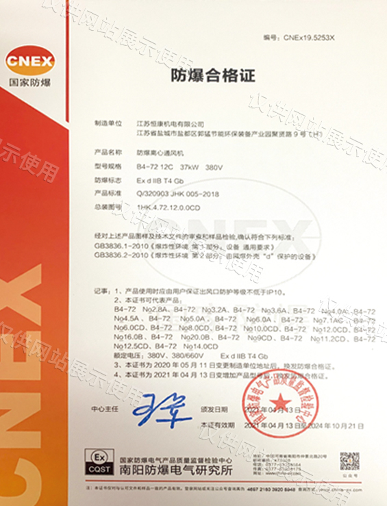 • 防爆合格证